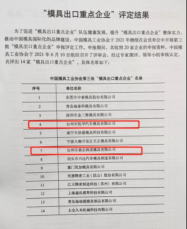 黃巖地區(qū)獲“模具出口重點(diǎn)企業(yè)”名單: